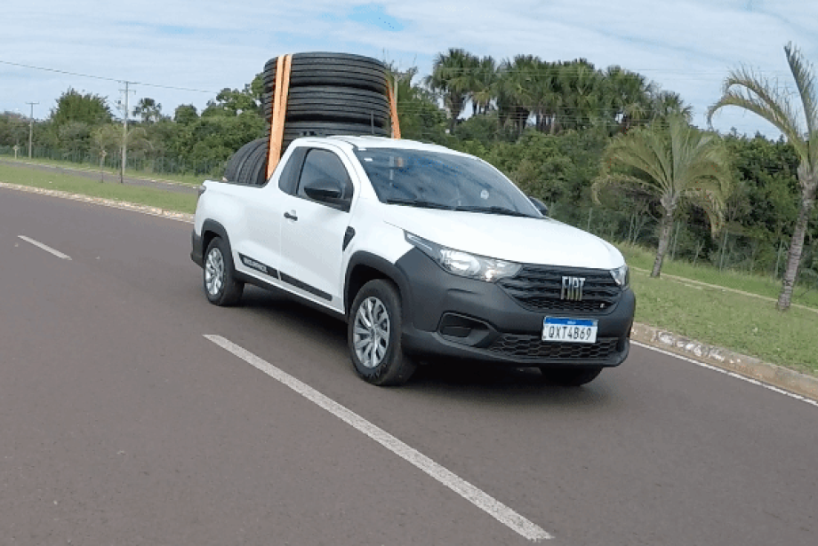 Realmente, a nova calibragem da suspensão deixou a picape mais robusta e, mesmo com o motor de 88 cv com 12,5 kgfm de torque, o veículo puxa bem a carga. Notório é que, mesmo sem peso, a “tocada” é igual: o que cai é o consumo. Andamos com etanol na cidade fazendo média de 7,8 km/l. No teste carregado, a média caiu para 7 km/l.