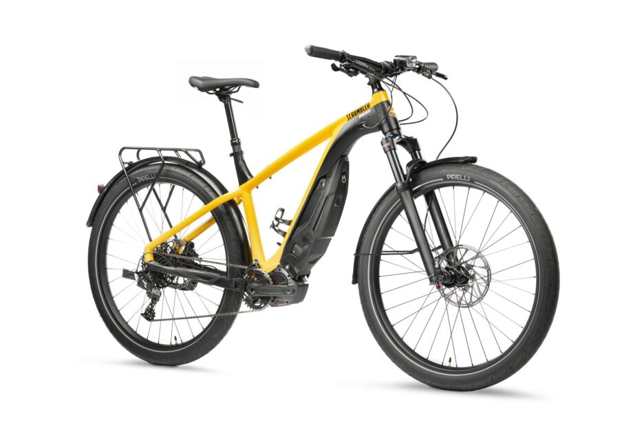 A mobilidade elétrica na Europa não para de crescer, impulsionada pelos incentivos tributários locais para bicicletas e scooters que podem ser carregadas em tomadas. Até marcas sofisticadas como a Ducati começam a voltar suas atenções para esse segmento. E a fabricante italiana de esportivos sediada na cidade bolonhesa de Borgo Panigale anuncia o lançamento da e-Scrambler. Segundo a Ducati, o baixo centro de gravidade e a geometria da estrutura permitem que a e-Scrambler ofereça as mesmas sensações de pilotagem de uma bicicleta tradicional. A bike elétrica e-Scrambler traz muitos acessórios como o rack para transporte de bagagem, para-lamas, suporte e luzes de sinalização. O quadro é de alumínio, o motor é um Shimano Steps E7000 de 250 Watt com bateria de 504 Wh e os pneus são Pirelli Cycl-e GT. O câmbio é fornecido pela Sram NX e tem 11 velocidades, assim como os freios de quatro pistões. Disponível em todos os revendedores europeus da Ducati e no site Ducati.com, a bicicleta elétrica tem preço final de 3.699 euros (quase R$ 23 mil), com impostos e frete incluídos e bônus do governo deduzido.
