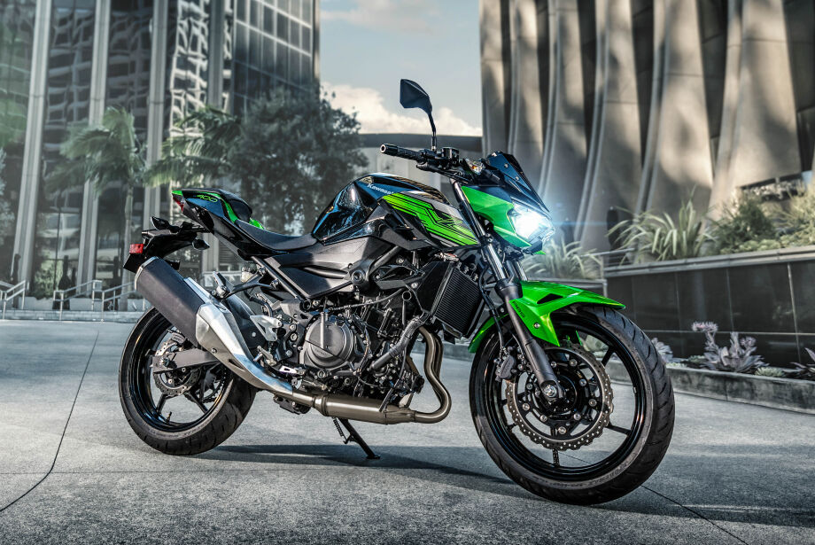 A Z400 combina o estilo agressivo da Z650 com design mais robusto para criar uma impressão marcante, ágil e masculina. Além de marcar o visual da Z400, os novos faróis em leds são mais eficientes e com maior iluminação, favorecendo a segurança. Já o painel é o mesmo que equipa a Z650, oferecendo um design de fácil leitura dos dados, com tacômetro digital simulando um conta-giros analógico, indicador de marchas ao centro e tela LCD multifuncional na parte inferior. Com um design imponente, semelhante ao de uma moto de maior cilindrada, a Kawasaki Z400 chegará à rede de concessionárias a partir da segunda quinzena de agosto com preço público sugerido de R$ 22.990 (sem frete), nas cores Candy Lime Green/Metallic Spark Black e Candy Cardinal Red/Metallic Flat Spark Black.